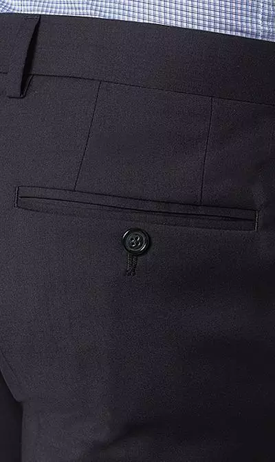 Details zur Hose: Verlängerter Bund, Schmal geschnitten, Aufgesetzte Taschen, Paspeltasche/n, Bügelfalte