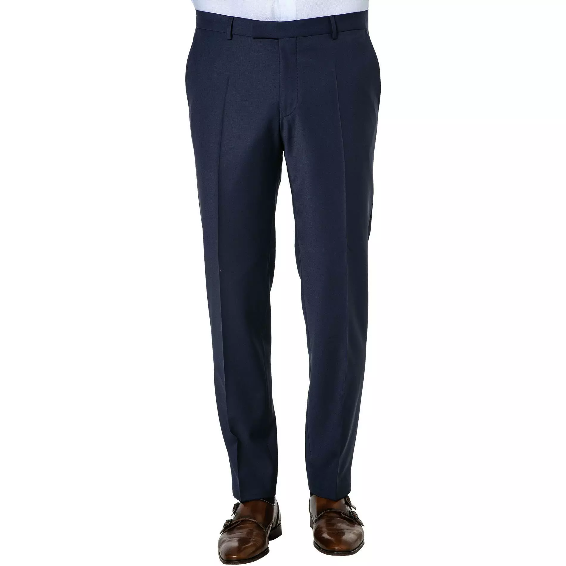 Details: Anzughose, Schmal geschnitten, Bügelfalten, Komfortable Bundhöhe