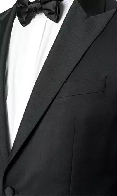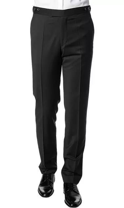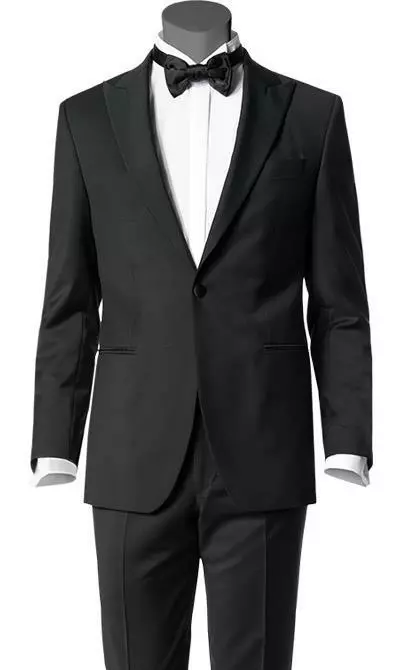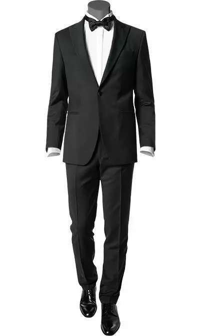 Dieser stilvolle Smoking präsentiert sich in hochwertiger Schurwolle. Die leicht schmale und taillierte Passform unterstreicht die modische Silhouette und ist absolut komfortabel. Ein exklusiver und außergewöhnlich chicer Anzug für Abendveranstaltungen.