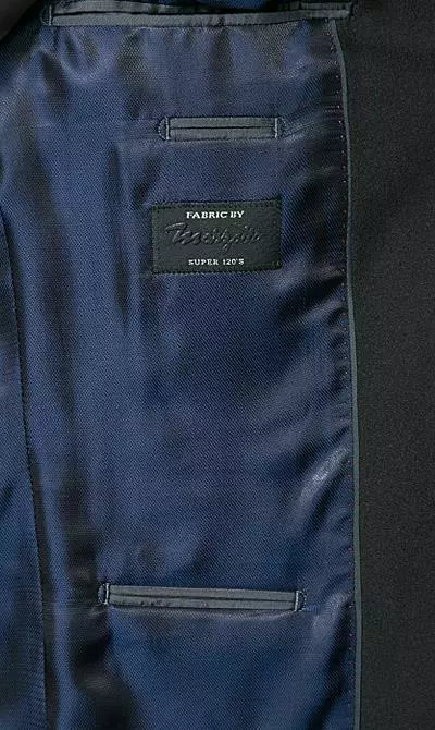 Besonderheiten: Revers und Taschenpaspel aus Kontrastware in dezent schimmernder Optik