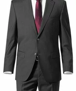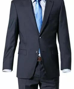 BOSS Anzug Jasper/Leon 50469527+9508/404 Regular Fit, Wolle-Leinen, Dunkelblau meliert, Dunkelblau