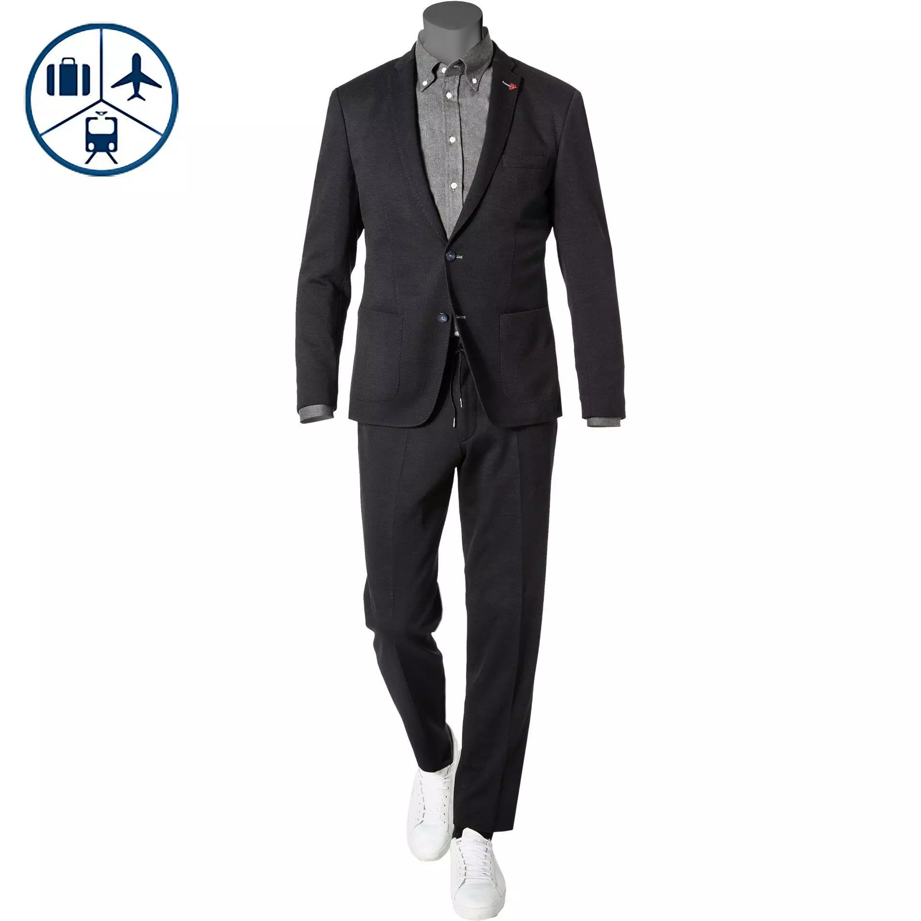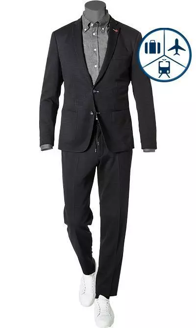 Dieser Jersey Anzug ist ein Muss für Ihren stilsicheren Auftritt auf Reisen! Die hochwertige Verarbeitung und der zeitlose Chic in Kombination mit bequemem Komfort zeichnen den modernen Zweiteiler aus. Das leger mit Halbfutter ausgestattete Sakko und eine Jogpant als Alternative zur klassischen Anzughose verleihen diesem Modell einen neuen, zeitgemäßen Look.