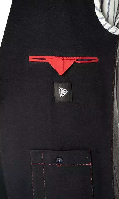 Label / Logo: Roter Metall-Anstecker am Revers