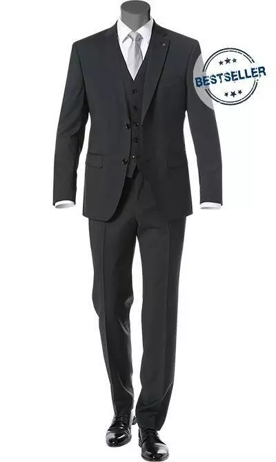 Anzug mit Weste aus der Serie Freestyle 3000 von ROY ROBSON Beste Schurwolle, ein cleanes Design und ein antaillierter Schnitt sind die Zutaten für diesen erstklassigen Anzug, der mit Geradlinigkeit und Eleganz besticht. Ein chicer Allrounder für die smarte Business-Garderobe sowie als gehobenes Outfit für offizielle Anlässe. Ein moderner und inspirierender Anzug, der Sie stilvoll in Szene setzen wird.