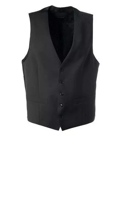 Details zur Weste: Mit kleinen Schlitzen, Spitzer Saumverlauf, V-Ausschnitt, Weitenregulierbarer Taillenriegel mit Schließe, Leistentasche/n