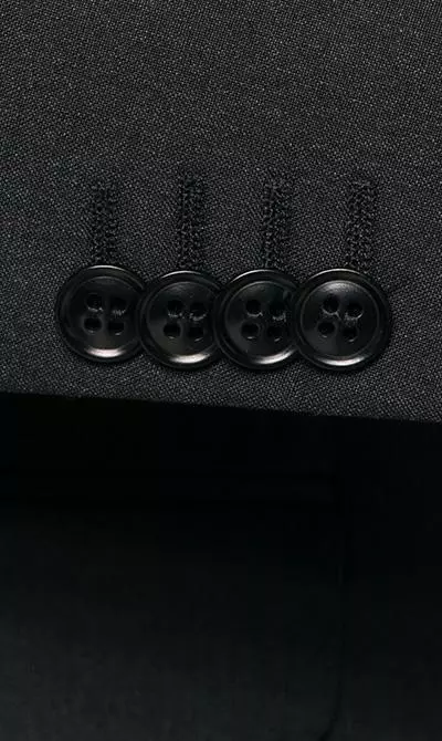 Label / Logo: Klassisches Revers mit Knopfloch links und Metall-Anstecker