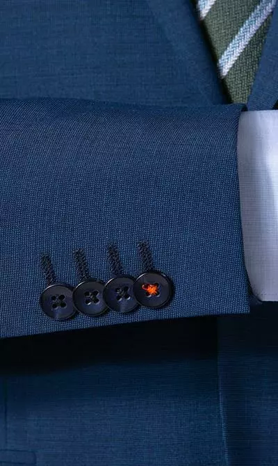 Details zum Sakko: Schmal geschnitten, Tailliert, Reverskragen, Zwei-Knopf-Sakko, Einreiher, Brustleistentasche, Paspelierte Pattentasche/n, Doppelschlitze, Zierschlitz mit Kissing Buttons, Leistentasche/n innen