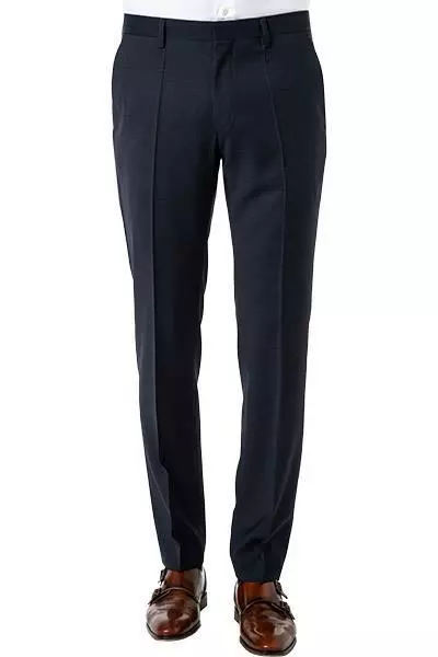 Details: Anzughose, Schmal geschnitten, Bügelfalten