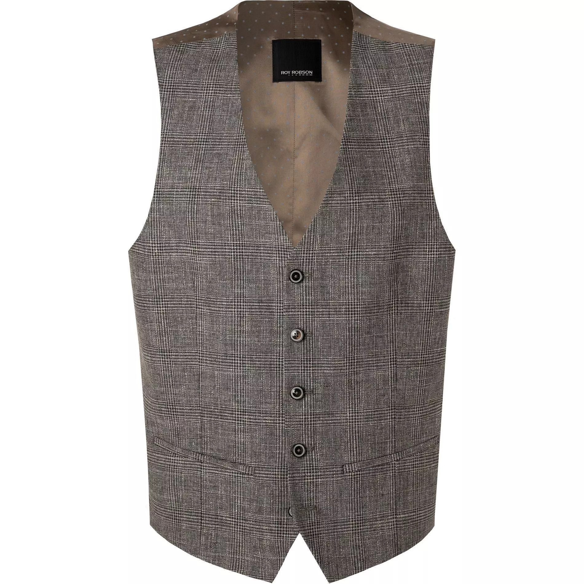 Mit einem modernen Karo Dessin präsentiert sich diese Weste. Ein Modell, welches gehobene Outifts mit Charme komplettiert und mit einem hochwertigen Mix aus Schurwolle und Leinen, sowie einem dezenten Stretch Anteil, für eine angenehme Haptik und Tragekomfort sorgt.
