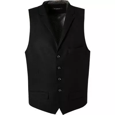 Details zur Weste: Mit kleinen Schlitzen, Spitzer Saumverlauf, Reverskragen, Rücken aus Oberstoff, Leistentasche/n auf der linken Brust, Paspelierte Pattentasche/n