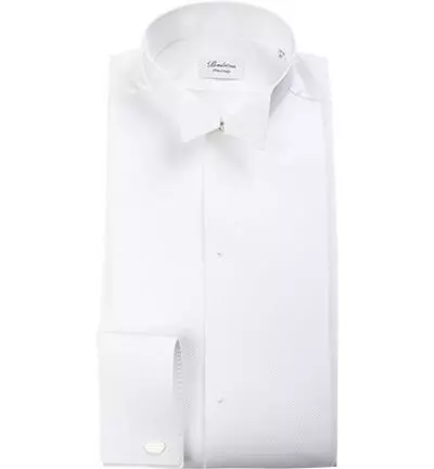 Kläppchenkragen, verstärkter Latz und Manschetten, sowie der Eingriff auf Brusthöhe zum Schließen der Knöpfe zeichnen das klassische Frackhemd aus. Der Begleiter sorgt für einen elegantes Erscheinungsbild – stilvoll, zeitlos und pure Eleganz.