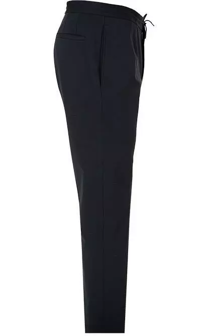 Details zur Hose: Schmal geschnitten, Leistentasche/n hinten, Seitliche Eingrifftaschen, Bügelfalte , Tunnelzug