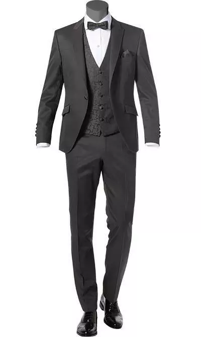 Dieser Anzug mit edel schimmerder Weste ist auf jeden Fall die richtige Wahl für die Hochzeit und feierliche Anlässe. In schmaler, modischer Passform ist er aber nicht nur für festliche Veranstaltungen geeignet. In Braungrau als Alternative zu Schwarz setzen Sie ein modisches Statement. Trendsetter kombinieren das Sakko auch mal mit Jeans oder tragen Sneaker zum edlen Anzug. Die perfekte Mischung aus Coolness und Eleganz.