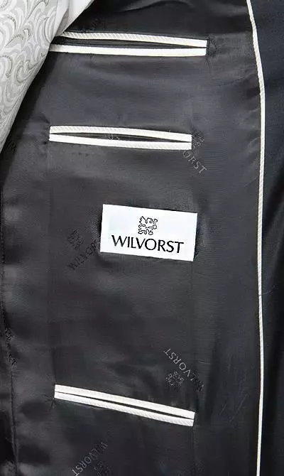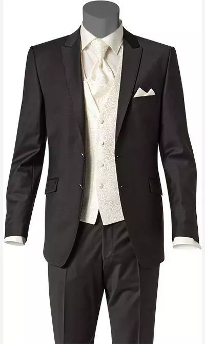 Maße: Bei Größe 50 Sakko Rückenlänge ohne Kragen ca. 75 cm, Brustweite ca. 110 cm, Hose Seitenlänge ca. 107 cm, Fußweite ca. 40 cm, Weste Rückenlänge ca. 58 cm, Brustweite ca. 102 cm