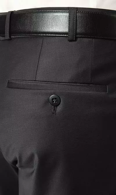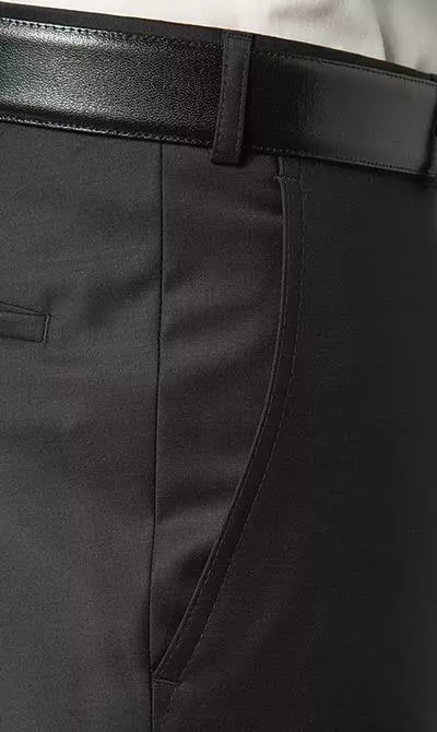Details zur Hose: Verlängerter Bund, Schmal geschnitten, Aufgesetzte Taschen, Leistentasche/n, Bügelfalte