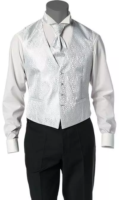 Elegante Weste mit romantischem Charakter: eine perfekte Ergänzung, am besten in Kombination mit einem Plastron, für Bräutigam-Outfits oder den festlichen Auftritt – eine dezente Glanzoptik unterstützt die elegante Wertigkeit und die Festlichkeit des Gesamtbildes.