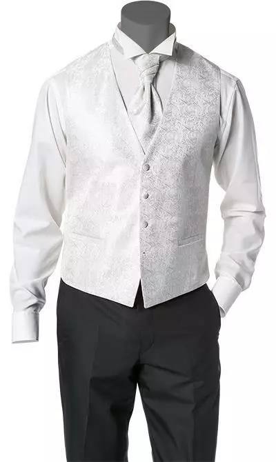 Elegante Weste mit romantischem Charakter: eine perfekte Ergänzung, am besten in Kombination mit einem Plastron, für Bräutigam-Outfits oder den festlichen Auftritt – eine dezente Glanzoptik unterstützt die elegante Wertigkeit und die Festlichkeit des Gesamtbildes.