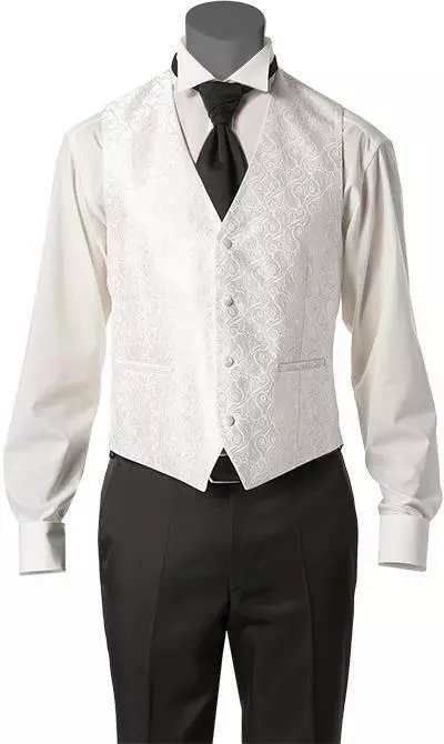 Bei dieser Weste trifft Tradition auf Moderne. Sie passt hervorragend zum festlichen Anzug, am besten in Kombination mit einem Plastron und Einstecktuch oder auch einer klassischen Schleife. Sie besteht aus feinstem Stoff, vorne aus Oberstoff, hinten aus hochwertigem Futter.