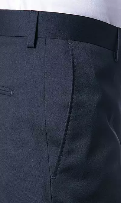 Details zur Hose: Verlängerter Bund, Schmal geschnitten, Paspeltasche/n, Seitliche Eingrifftaschen, Bügelfalte