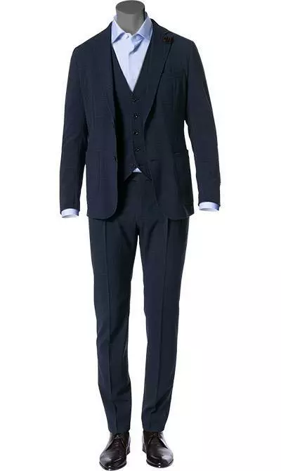 Dieser Anzug begeistert durch den modischen Look und eine schlanke Silhouette. Die erstklassige, leichte Schurwoll-Qualität ist perfekt für warme Tage geeignet. Mit Stehkragenhemd und Sneaker kombiniert wird daraus ein ein sportlich-elegantes Outfit mit einer individuellen Note.